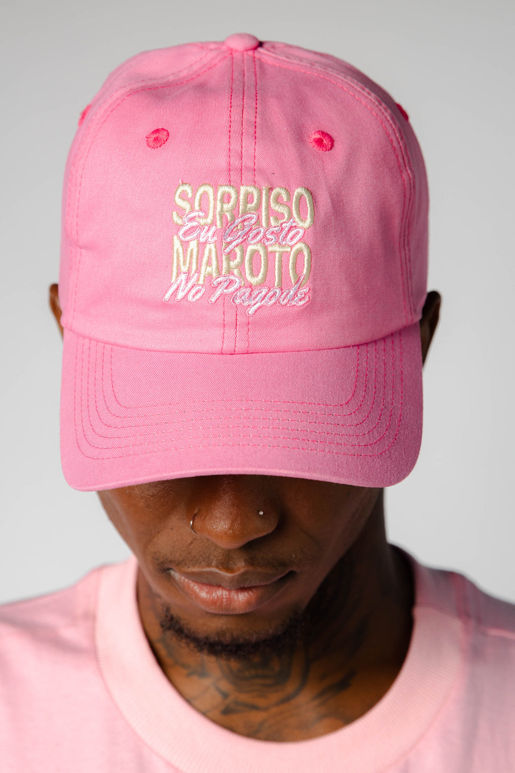 O Boné “Eu Gosto No Pagode” é a escolha certa pra quem vive e respira o som do Sorriso Maroto. Com o tom rosa vibrante e o bordado “Sorriso Maroto – Eu Gosto No Pagode”, essa peça traduz o espírito leve, apaixonado e cheio de atitude do grupo. O design moderno e o toque macio do tecido trazem conforto e estilo em qualquer ocasião — seja no rolê, no show ou no dia a dia. Na parte de trás, o detalhe com o sorriso bordado completa o visual com autenticidade e carisma.