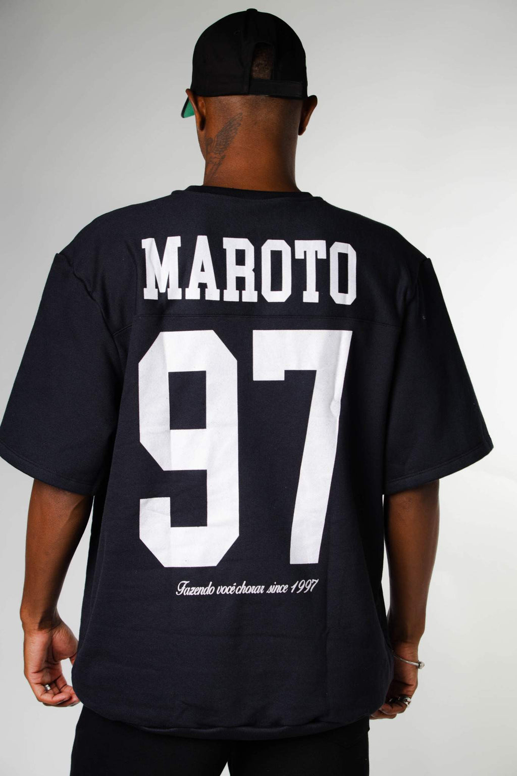 A estampa frontal com o lettering “Sorriso” garante destaque e autenticidade, enquanto as costas com o nome Maroto e o número 97 reforçam a identidade marcante da peça.